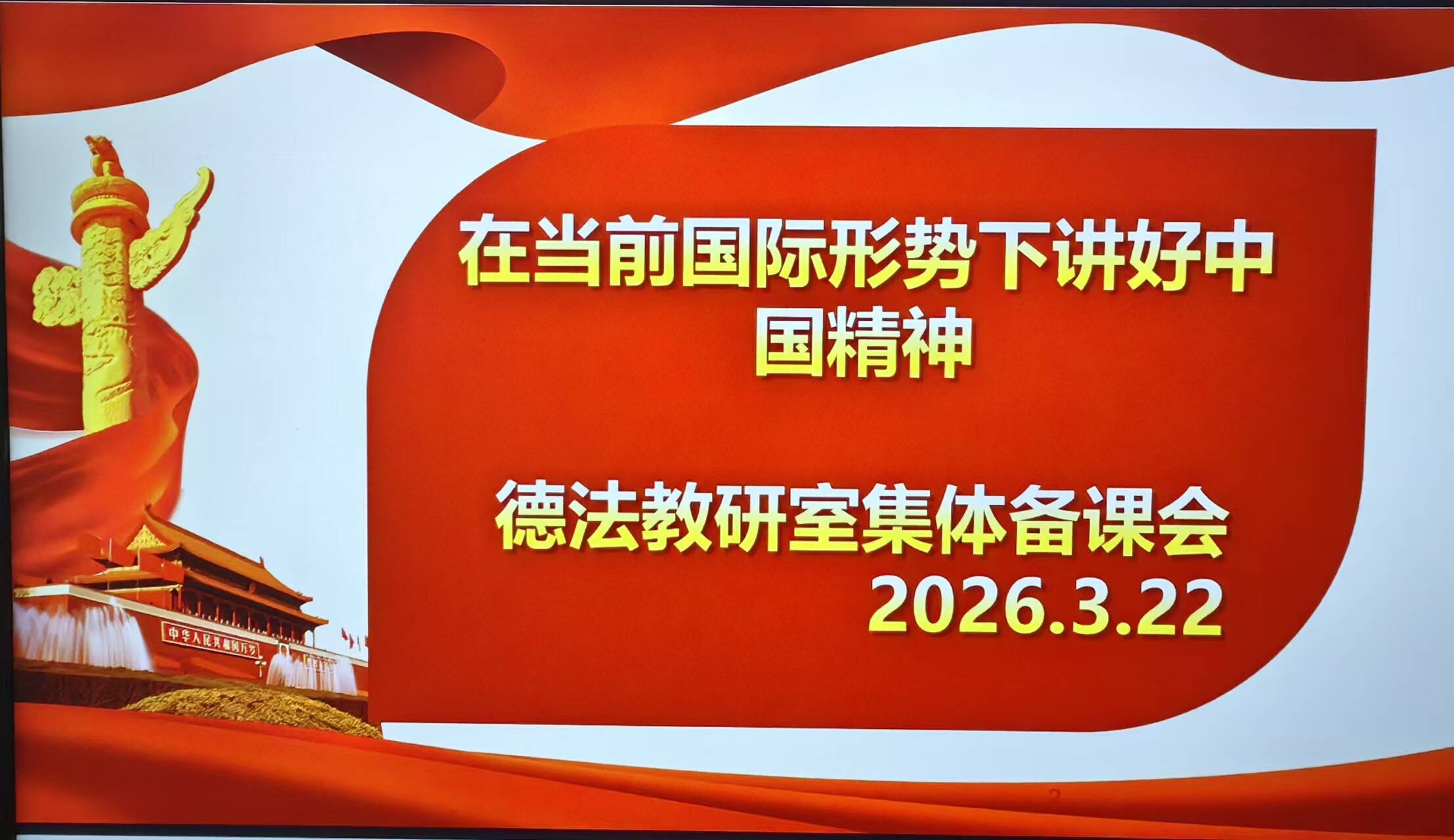 3月22日,“思想道德与法治”教研室开展2025-2026学年第二学期集体备课会,教研室全体教师参加。本次集体备课以当今国际形势背景下如何讲好中国精神为主题,聚焦当前国际地缘政治冲突,经济复苏乏力,单边主义抬头等复杂变局,围绕如何将“中国精神”与中国和平发展道路,负责任大国担当,中国式现代化实践等内容深度融合展开研讨。老师们围绕课程设计思路、教学目标、重难点突破、案例选取等进行讨论,明确三大核心方向:一是...