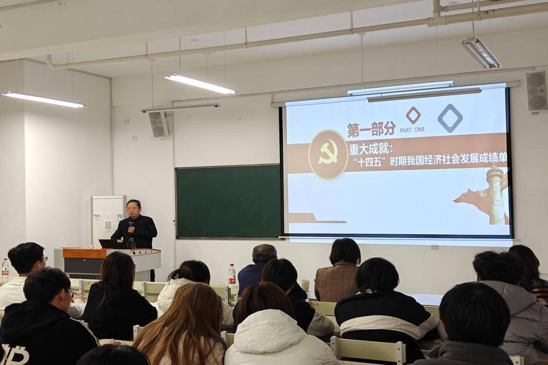 宣讲中,李教授紧扣全会精神核心,系统解读了《中共中央关于制定国民经济和社会发展第十五个五年规划的建议》的战略部署,重点阐释了 “十五五” 时期发展定位、科技自立自强、新质生产力培育等关键内容,指明青年大学生的使命担当。