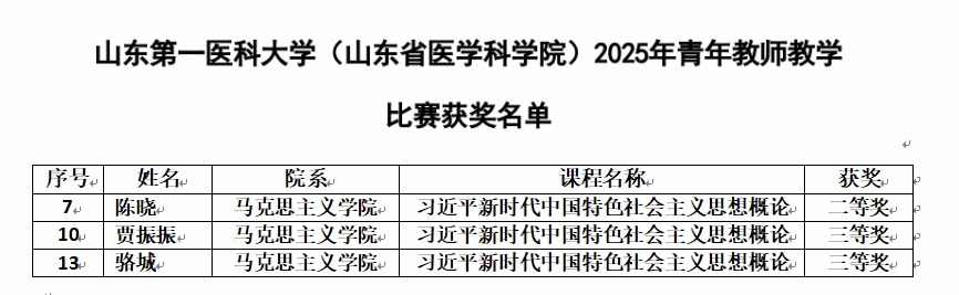在学校近日公布的2025年青年教师教学比赛获奖名单中,我院三位教师表现优异,取得良好成绩。其中,陈晓老师获二等奖,贾振振、骆城老师获三等奖。 此次比赛是我校加强青年教师培养,提升教学质量的重要举措。我院积极响应,精心组织,三位教师充分展现了扎实的理论功底,丰富的教学经验和良好的职业素养,赢得了评审专家的一致认可。 未来,马克思主义学院将继续坚持立德树人根本任务,聚焦教学质量与水平提升,持续加强教育教学改革与创新,助力青年教师全面成长,推动思政课教育教学高质量发展。 通讯员:米婷婷